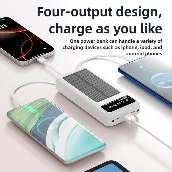 30000mAh Solar Power Bank with Built-in 4 Cables & LED Light | Portable External Battery for Nigeria Power Outage | Fast Charging for All Phones