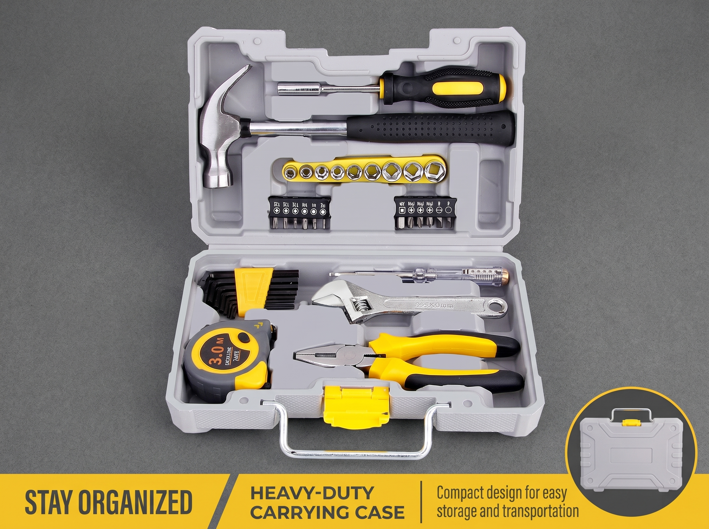 From claw hammer, adjustable wrench, combination pliers, to screwdriver bit set, socket set, hex key set, tape measure and voltage tester pen, it fully covers the high-frequency use scenarios of Nigerian users, including furniture assembly, home appliance maintenance, plumbing and electrical renovation, woodworking, simple car maintenance, and store facility maintenance. No need for scattered procurement, saving your time and money.