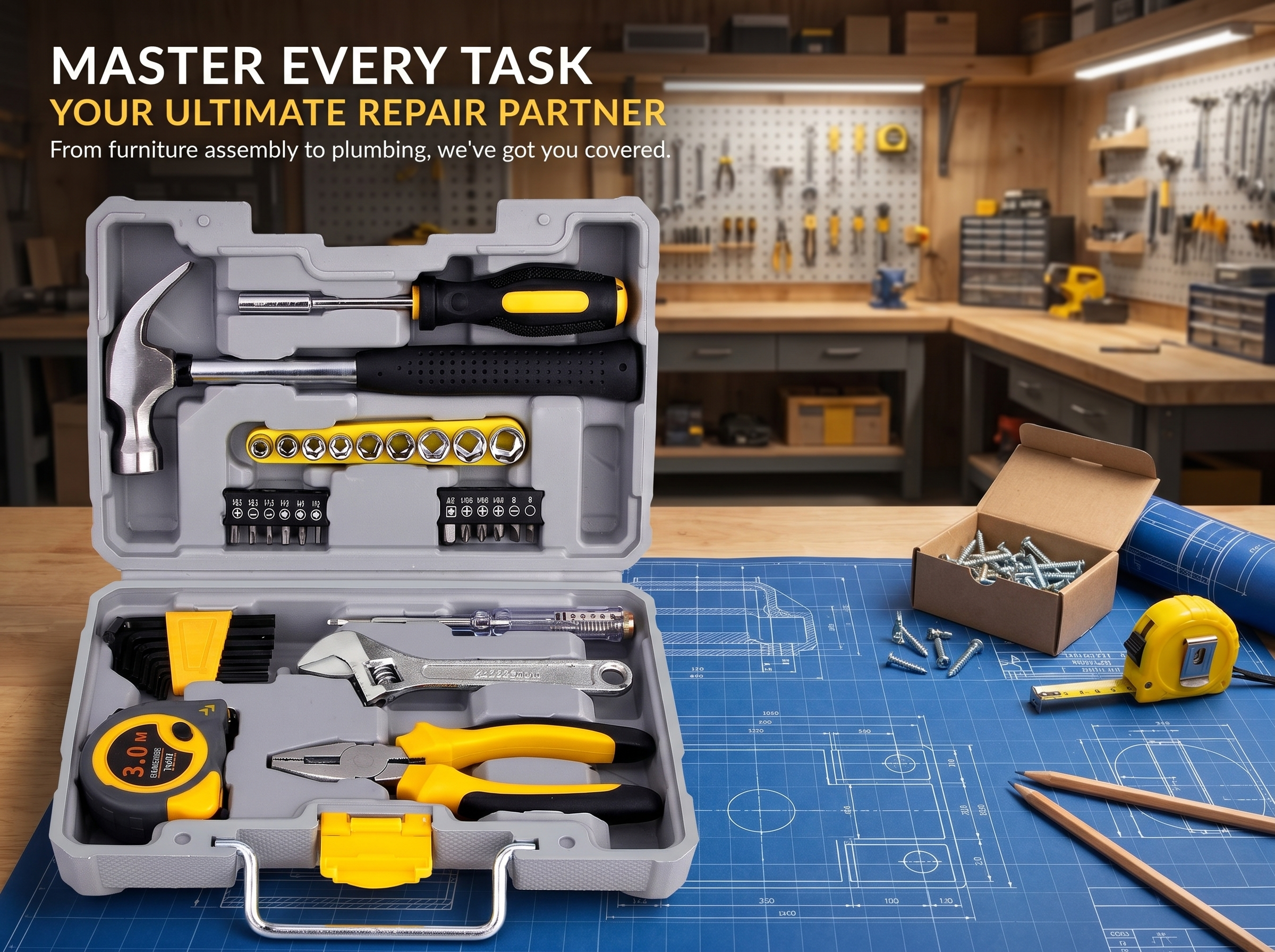 Furniture Assembly, Plumbing, Woodworking, Electrical Maintenance & DIY Projects All in One Set