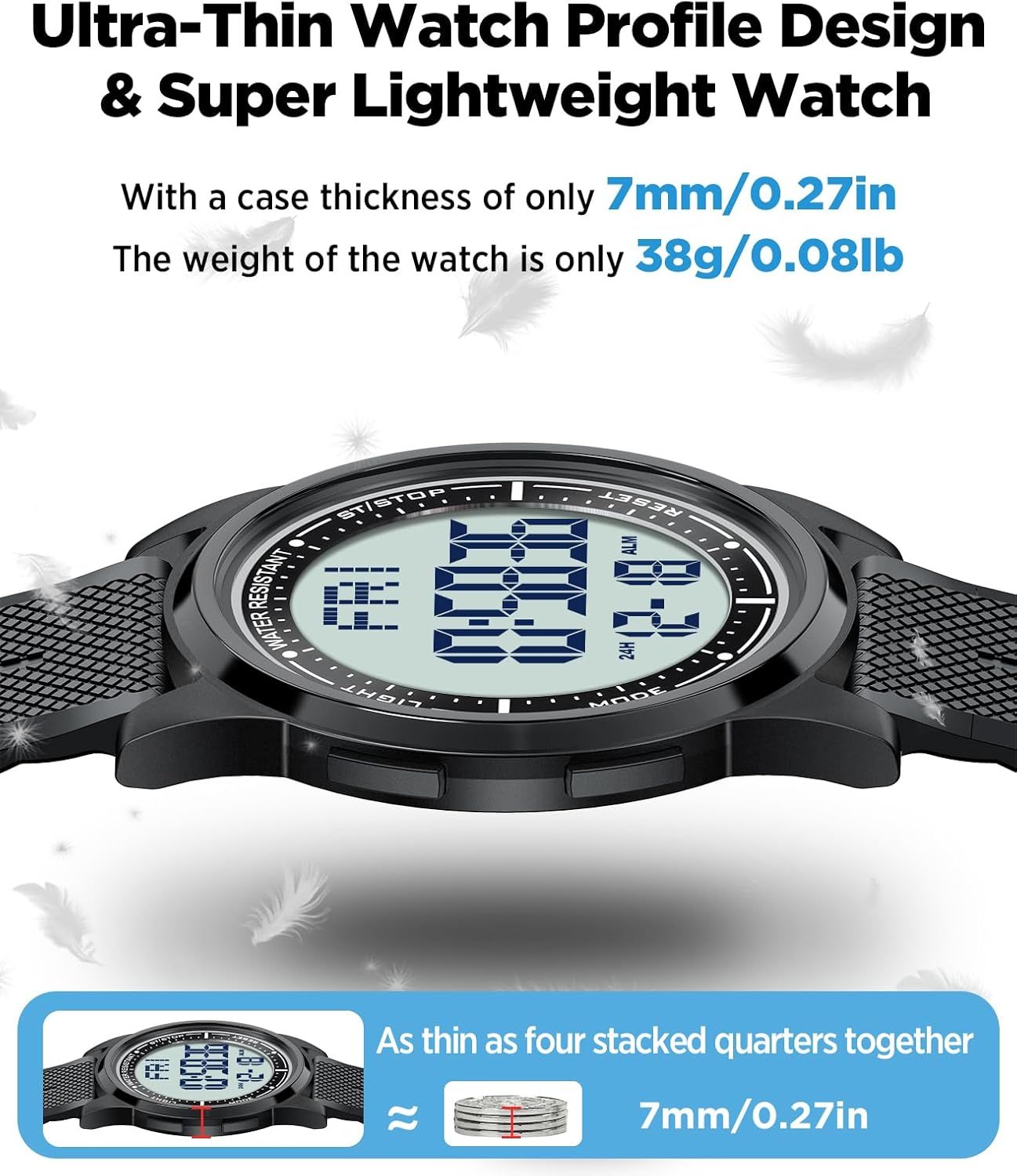 - Ultra-thin design of only 7mm for the watch body, the whole machine weighs only 38g, lighter than an egg, almost imperceptible when worn on the hand, no indentation or discomfort even when worn for a long time