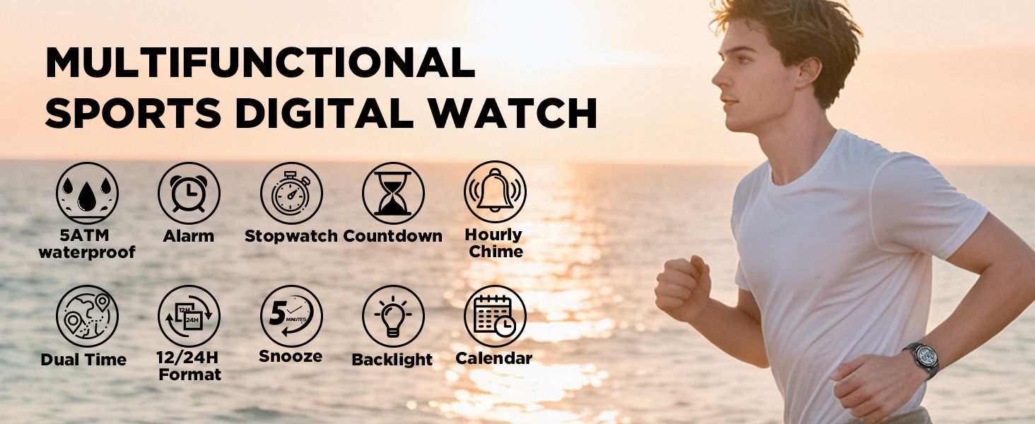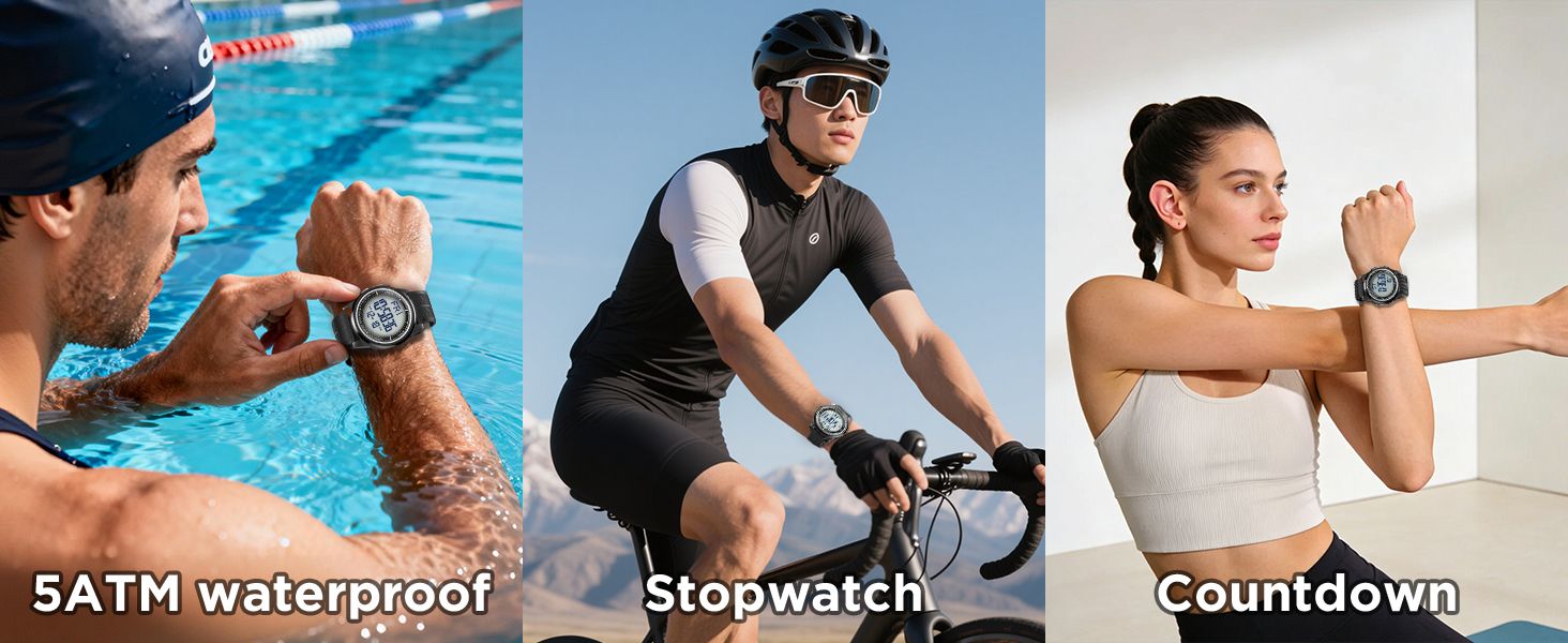 - ⚽ Sports & Fitness Enthusiasts: 5ATM waterproof supports swimming, running, football, fitness, stopwatch and countdown accurately record sports data, lightweight design for zero burden during sports