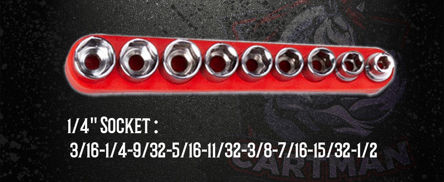1/4" Socket Set9pcs (Full specification from 3/16" to 1/2")