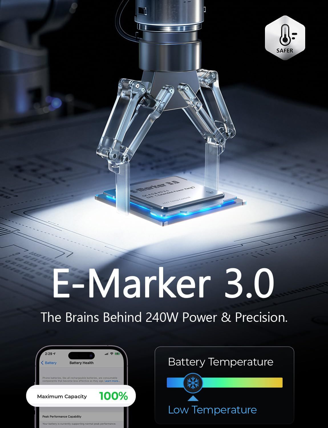- Built-in E-Marker 3.0 Smart Chip, monitors current and voltage 3.5 million times per second, smart temperature control, prevents overcharging, overcurrent and short circuit, safe charging even in Nigeria's unstable voltage, no device damage