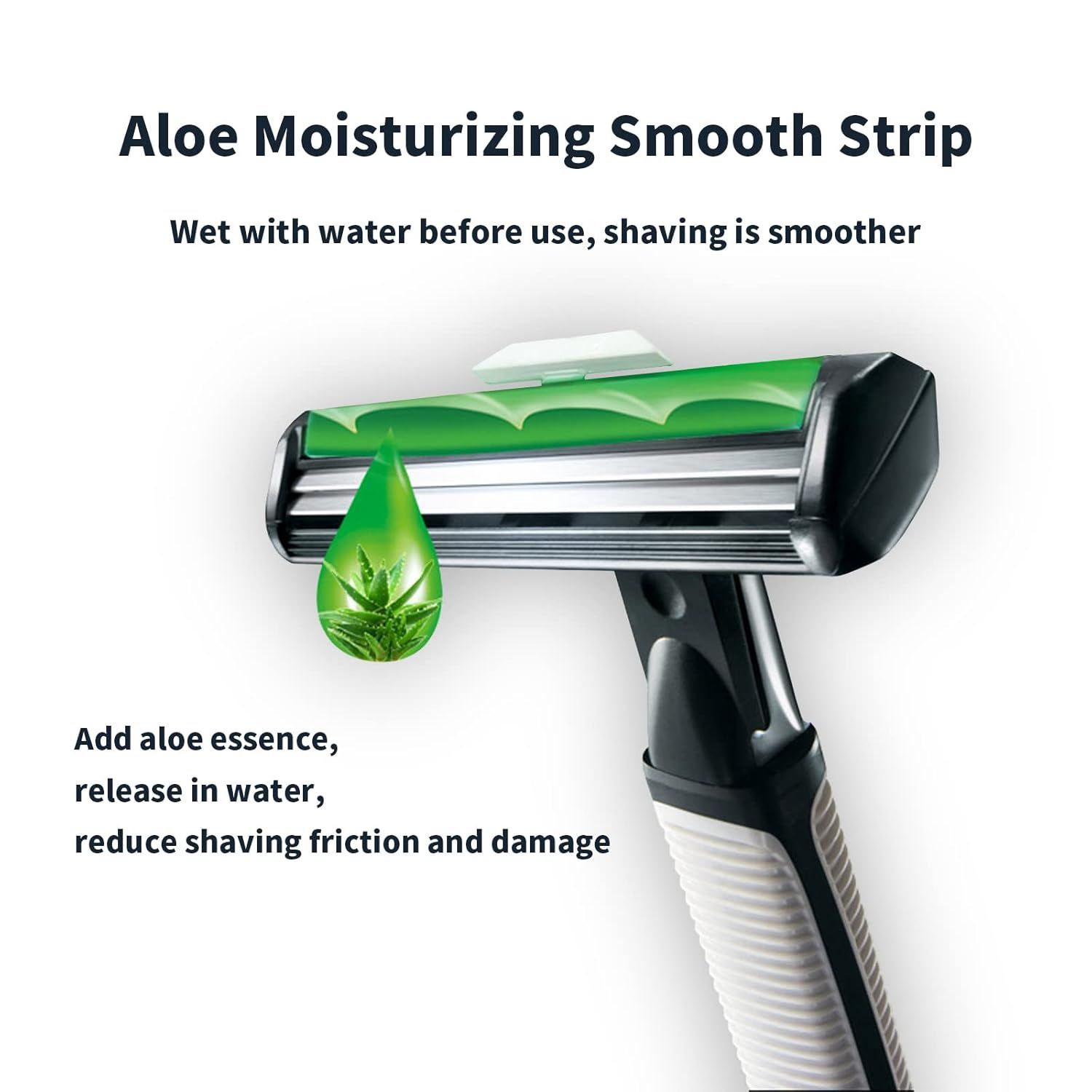 - The blade is equipped with an aloe vera essence lubricating strip, which releases aloe vera moisturizing ingredients when exposed to water, greatly reducing shaving friction, even dry shaving can be smooth and unobstructed, bid farewell to skin irritation