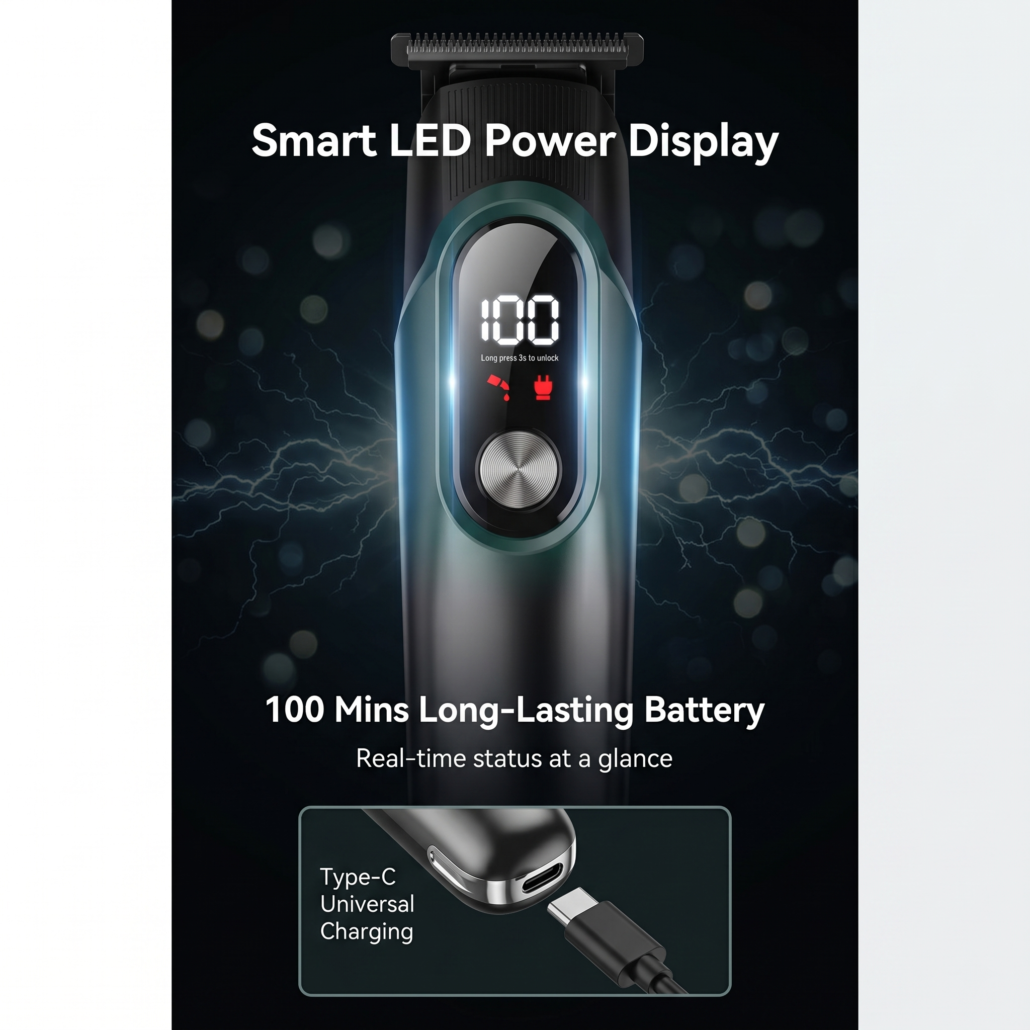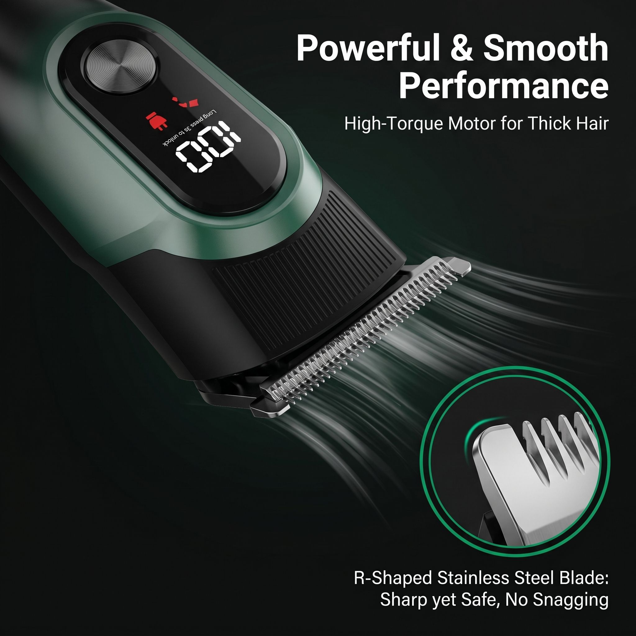 High-torque motor + R-shaped stainless steel blade, smooth cuts on thick hair, no snagging, no skin irritation