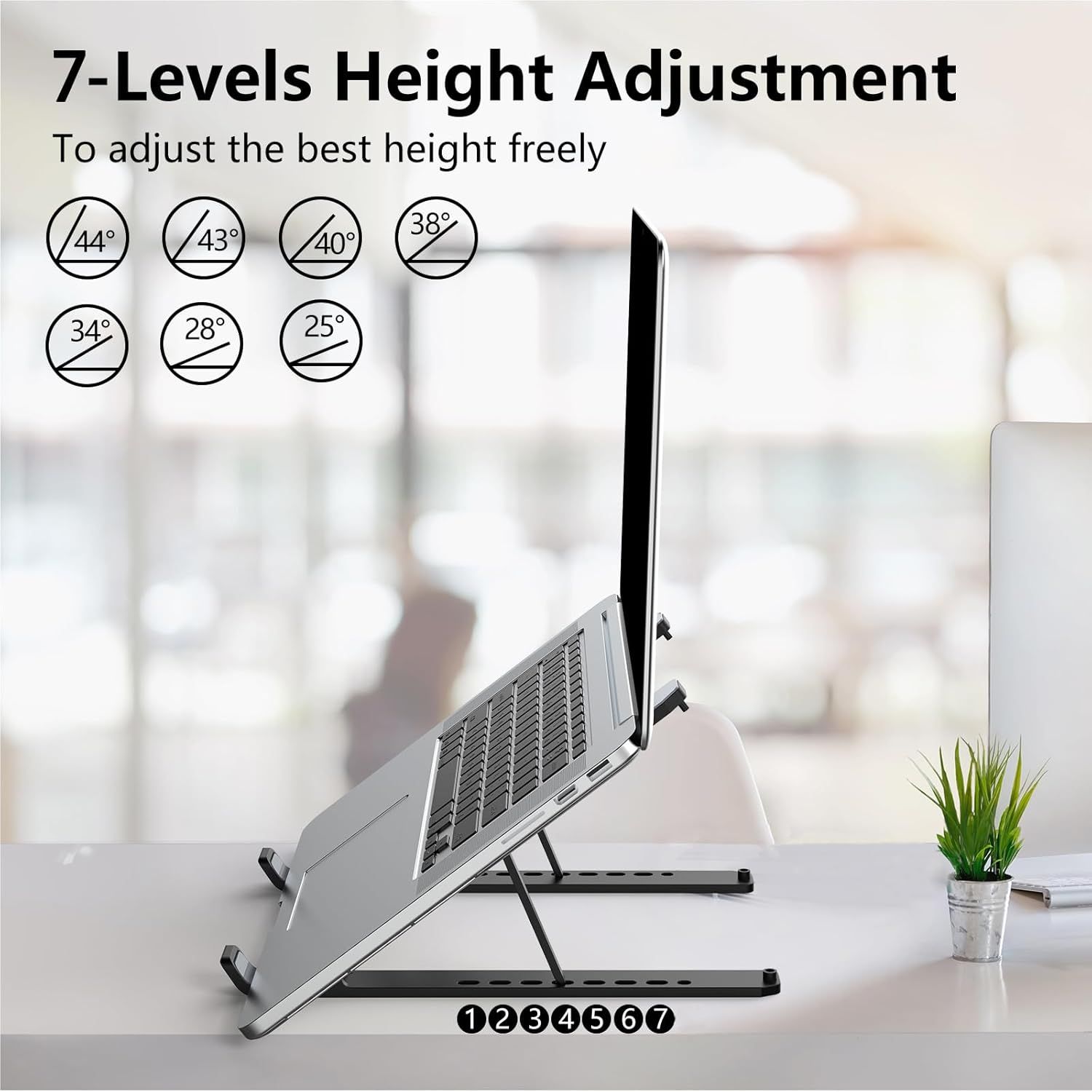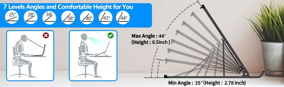 - 7 Precise Adjustable Angles: 25°-44° multi-angle options, fits different heights & work scenarios to find your perfect viewing angle