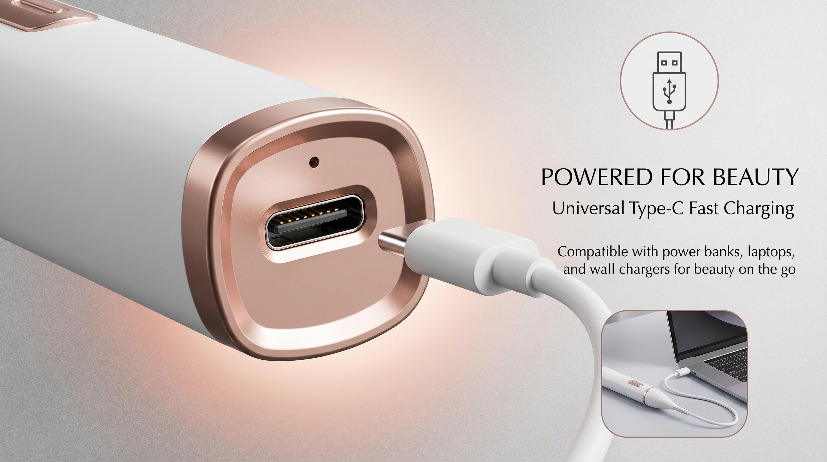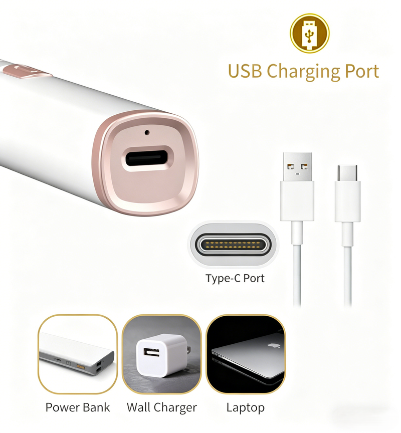 Adopting a universal Type-C fast charging interface, it is compatible with a variety of charging devices such as power banks, laptops, and wall chargers, with convenient and barrier-free charging. In view of the unstable power supply in some areas of Nigeria, the device can be charged with a power bank at any time, no need to worry about the device being unavailable due to power outages, and escort your exquisite makeup anytime, anywhere.