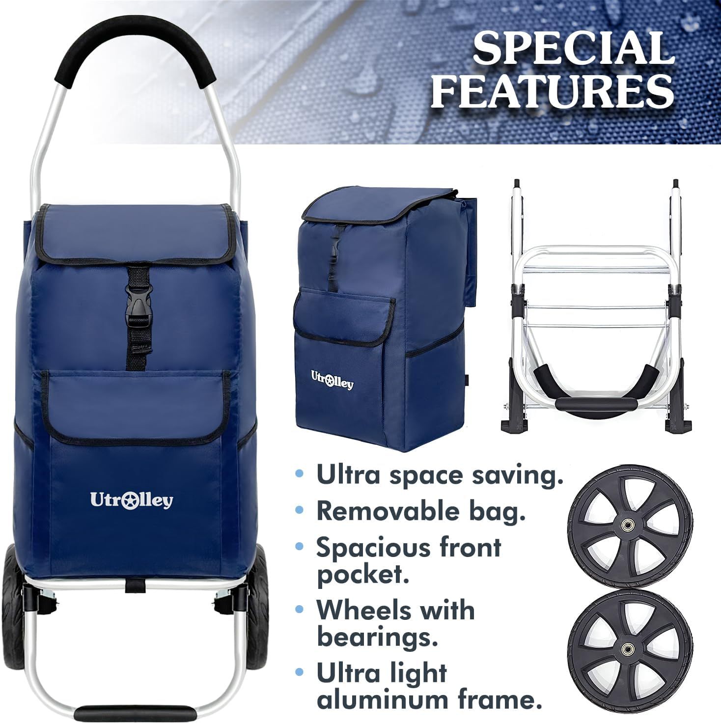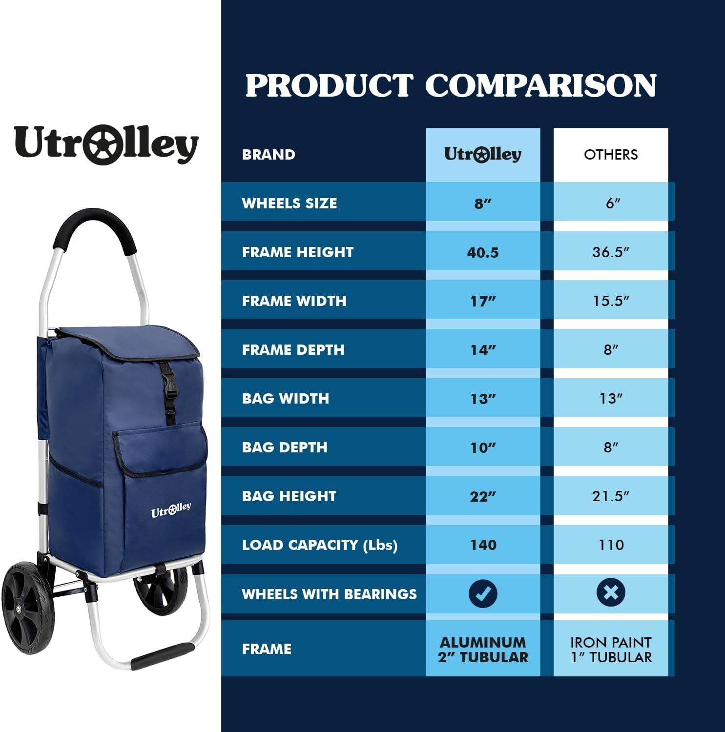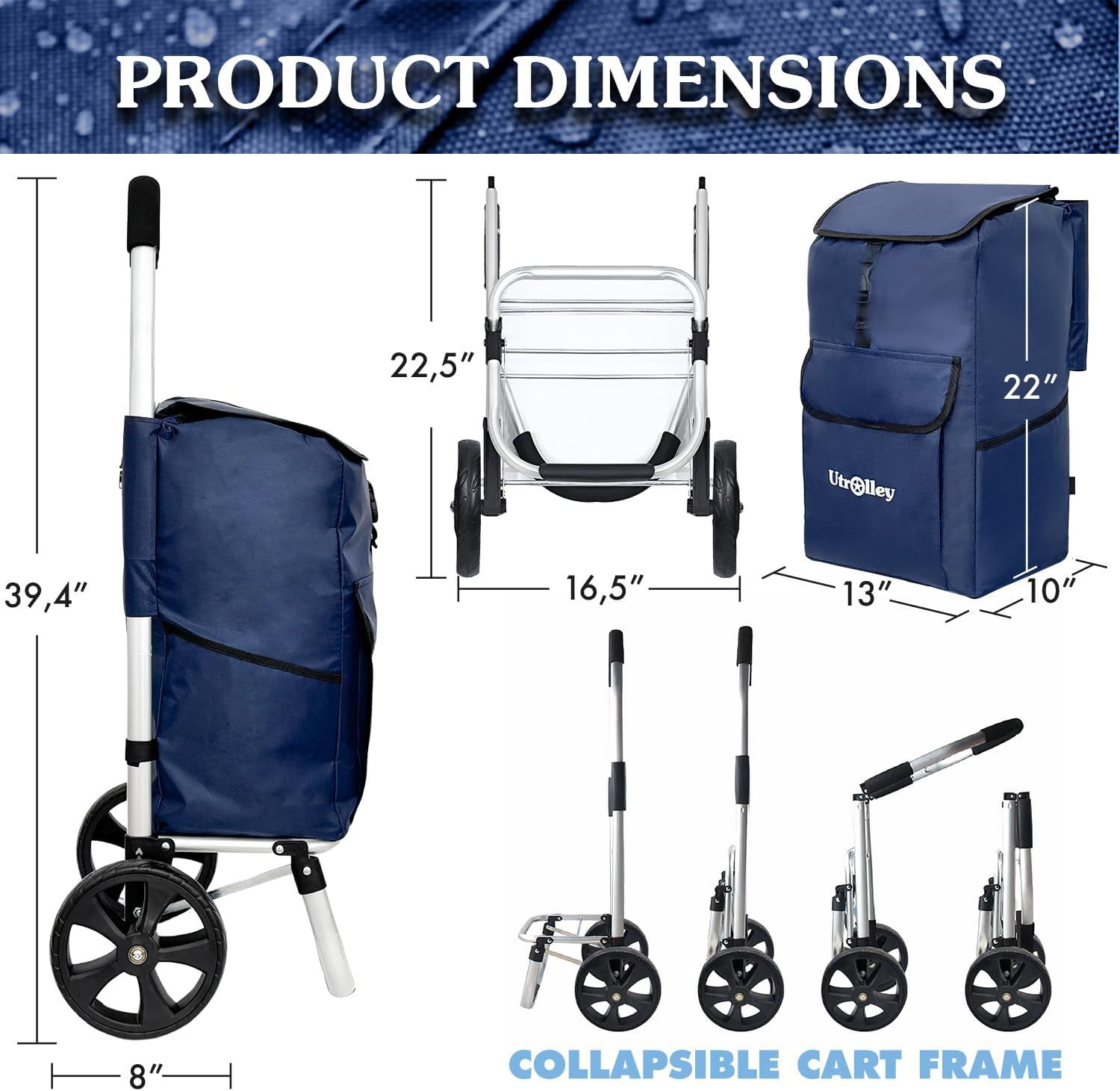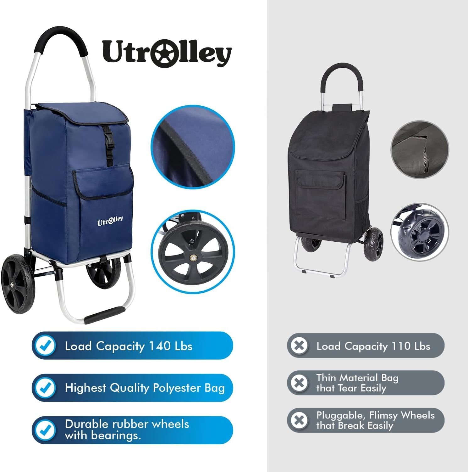 - Compared with ordinary inferior trolleys: iron frame is easy to rust, fabric is easy to tear, wheels are easy to fall off, Utrolley upgrades the quality in all dimensions from frame to fabric to wheels, one purchase, long-term use, no need to replace frequently, saving more costs for you